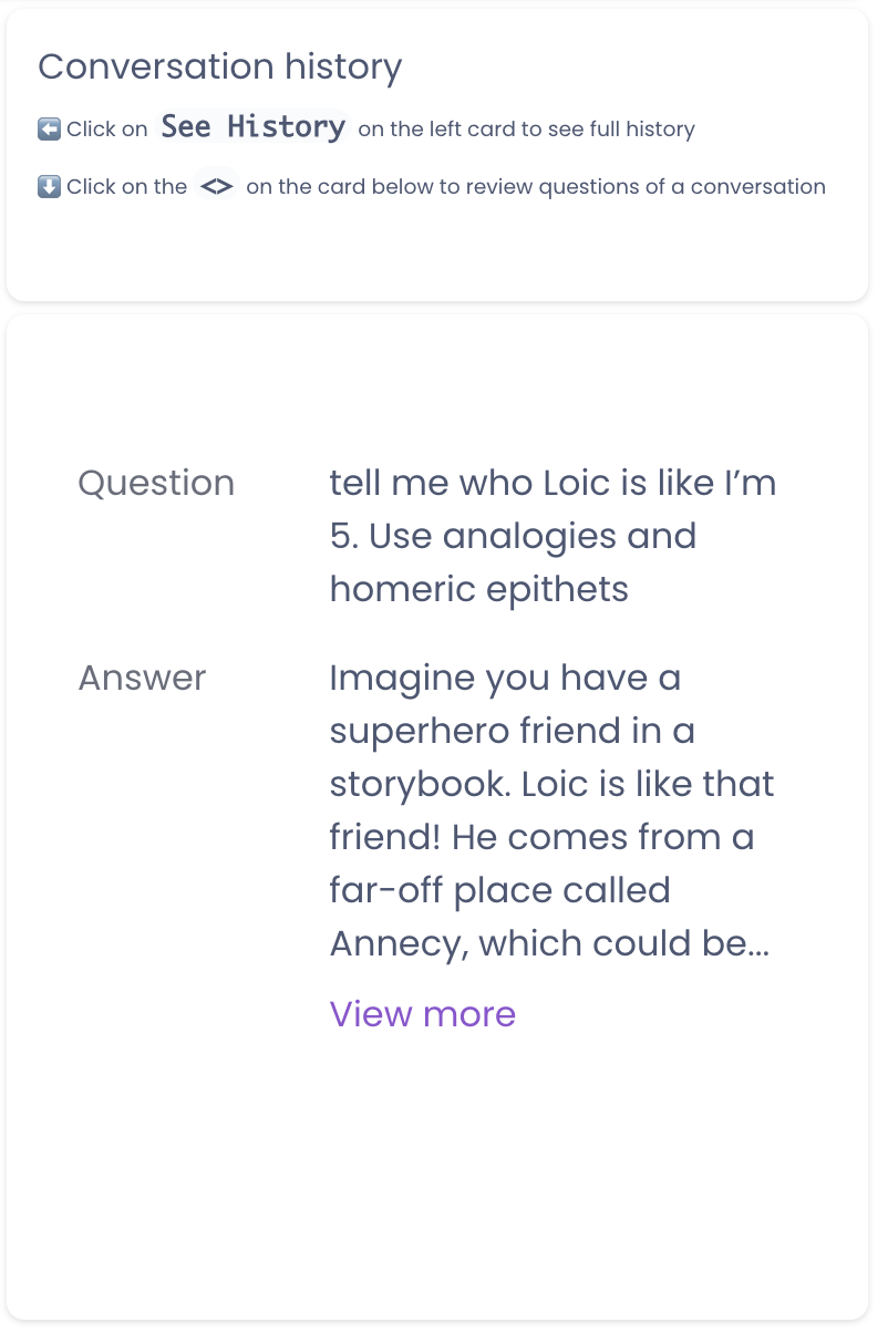 See all conversations, note that a conversation can have several questions & answers. You can click on the See History
