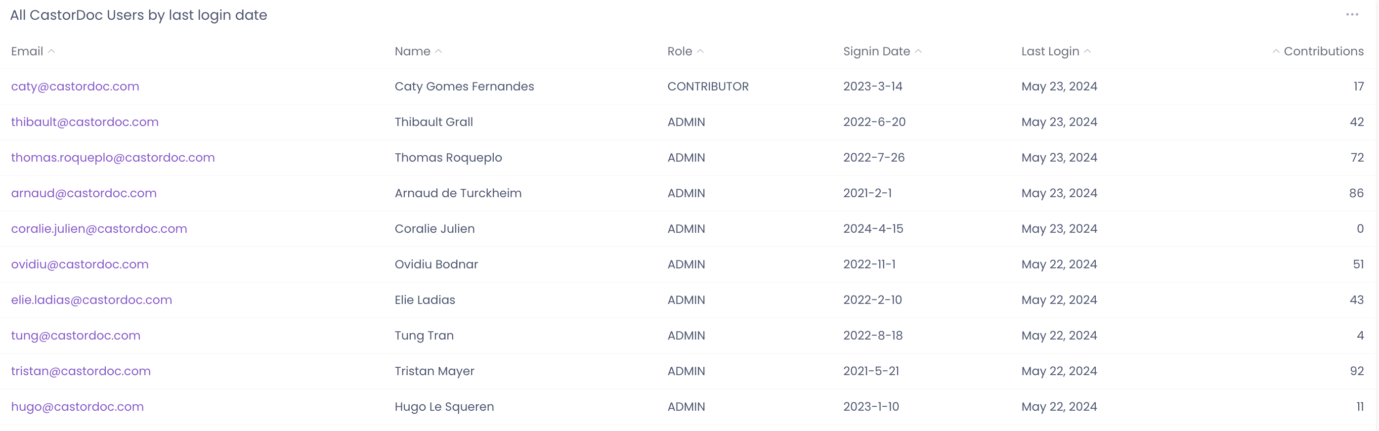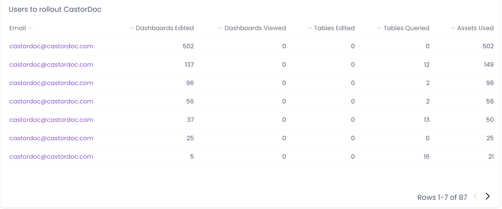 Get insights about how widely Catalog is used in your company. Which users or teams log in, contribute and how frequently? Catalog also helps you pilot your rollout by suggesting accounts you should invite based on their activity in your data stack!