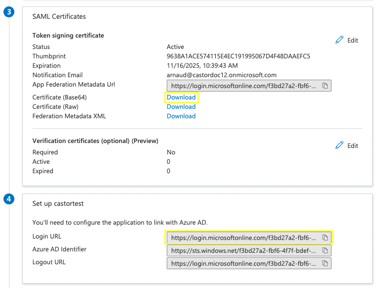 Download the certificate and copy the login URL, you'll need to send these to Catalog