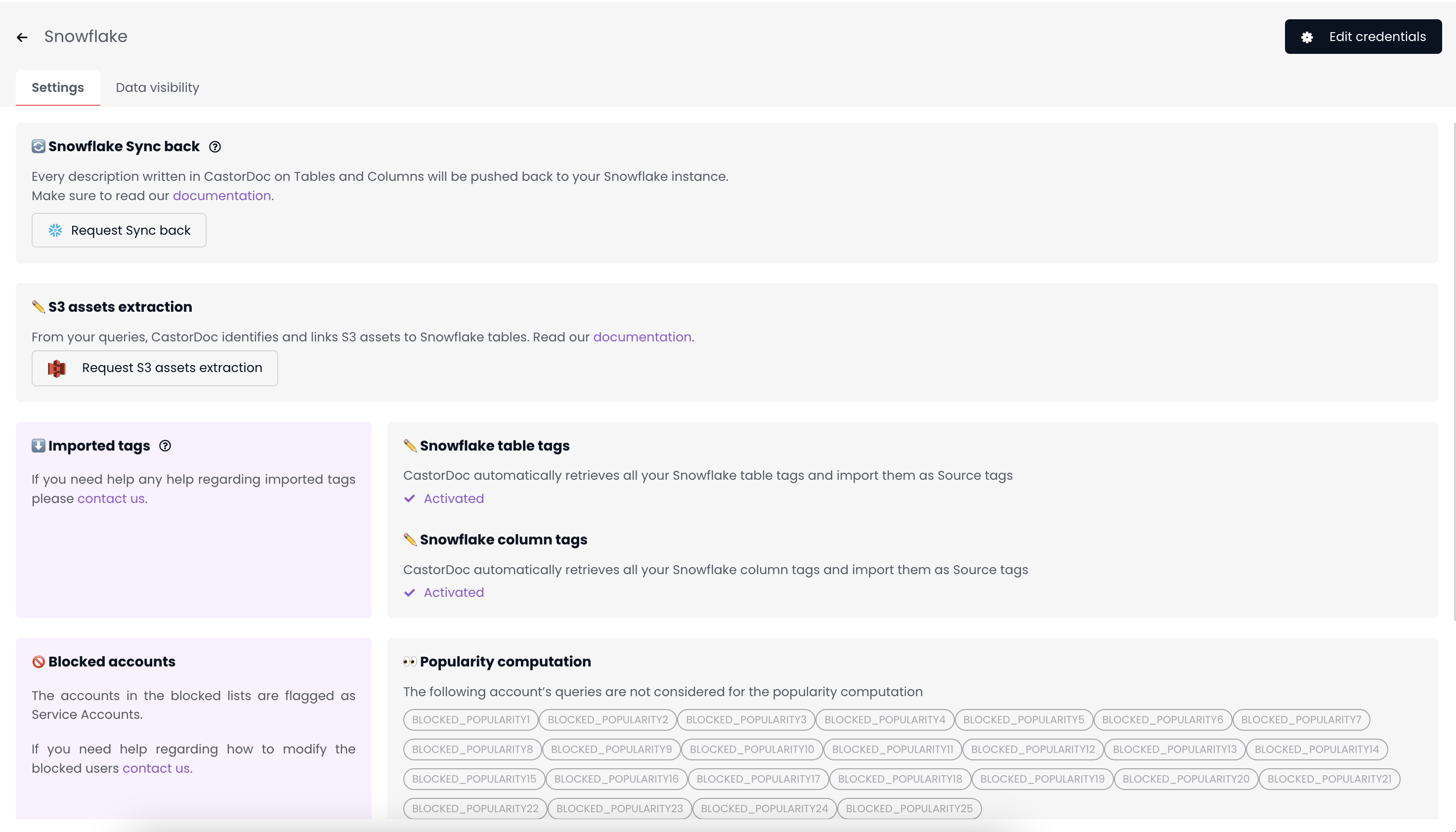 This page is designed to provide administrators with enhanced visibility and control over the various features available in Catalog for each type of integration. Non-exhaustive list of options you'll find there based on the technology: