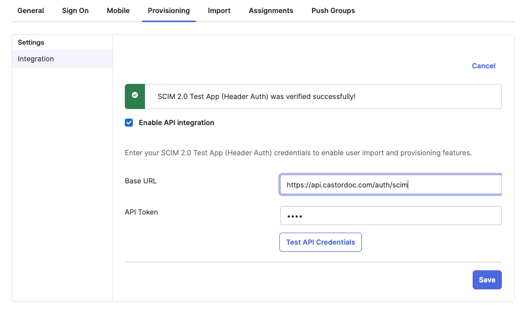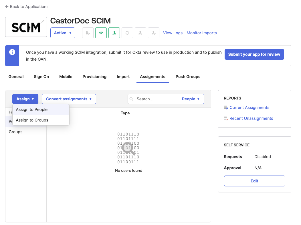 Please note that this setup requires you to get in touch with a Catalog ops (catalog-support@coalesce.io or Slack) to generate and share with you the required SCIM token you will use to login your SCIM app against Catalog’s SCIM API.