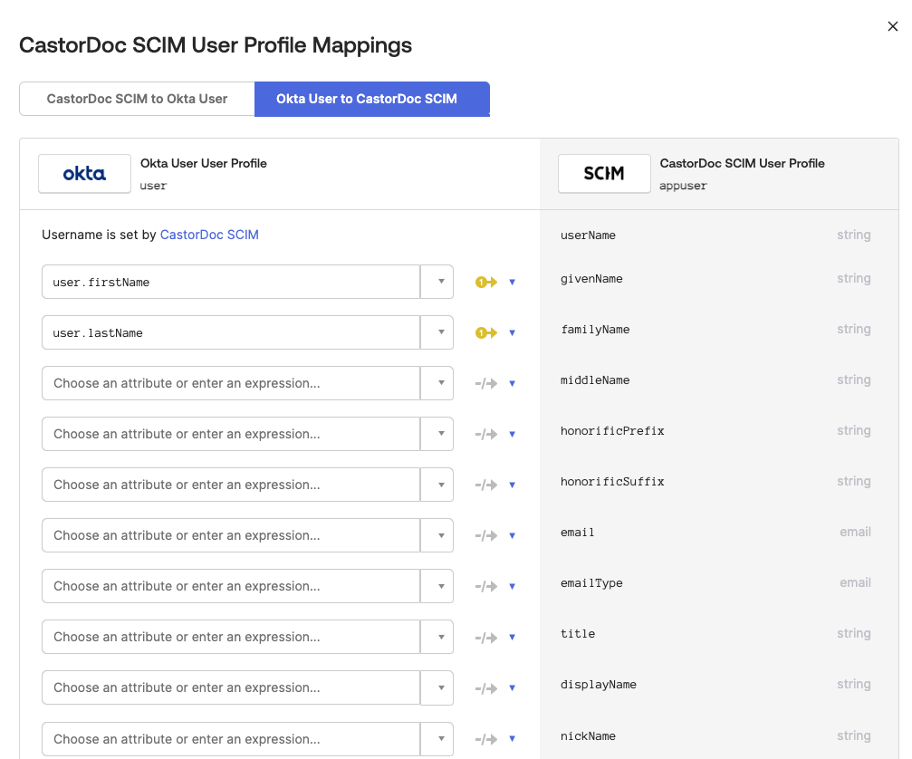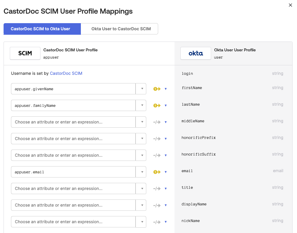 In this part we’ll craft the mapping between your user and team infos in Okta and their Catalog accounts. For that we need to update the 2 mappings.