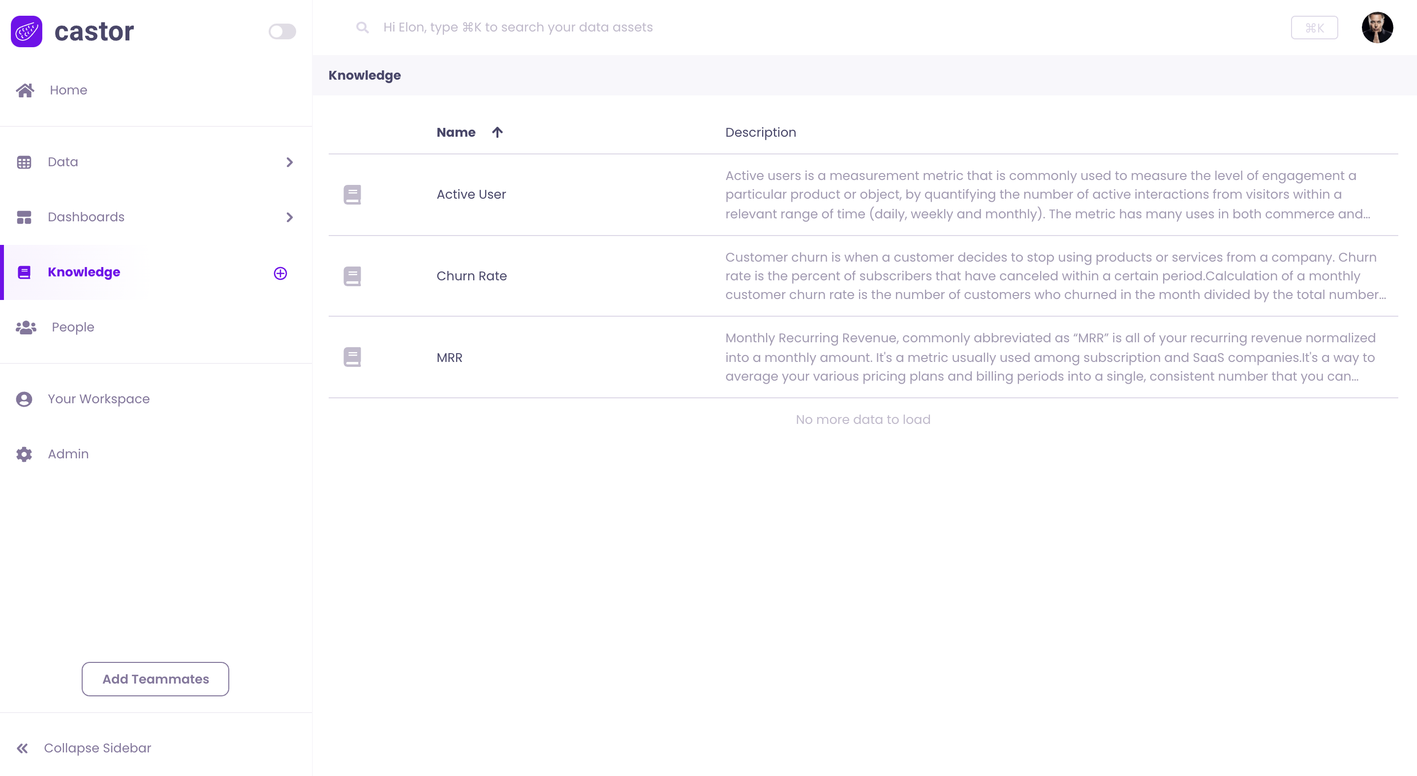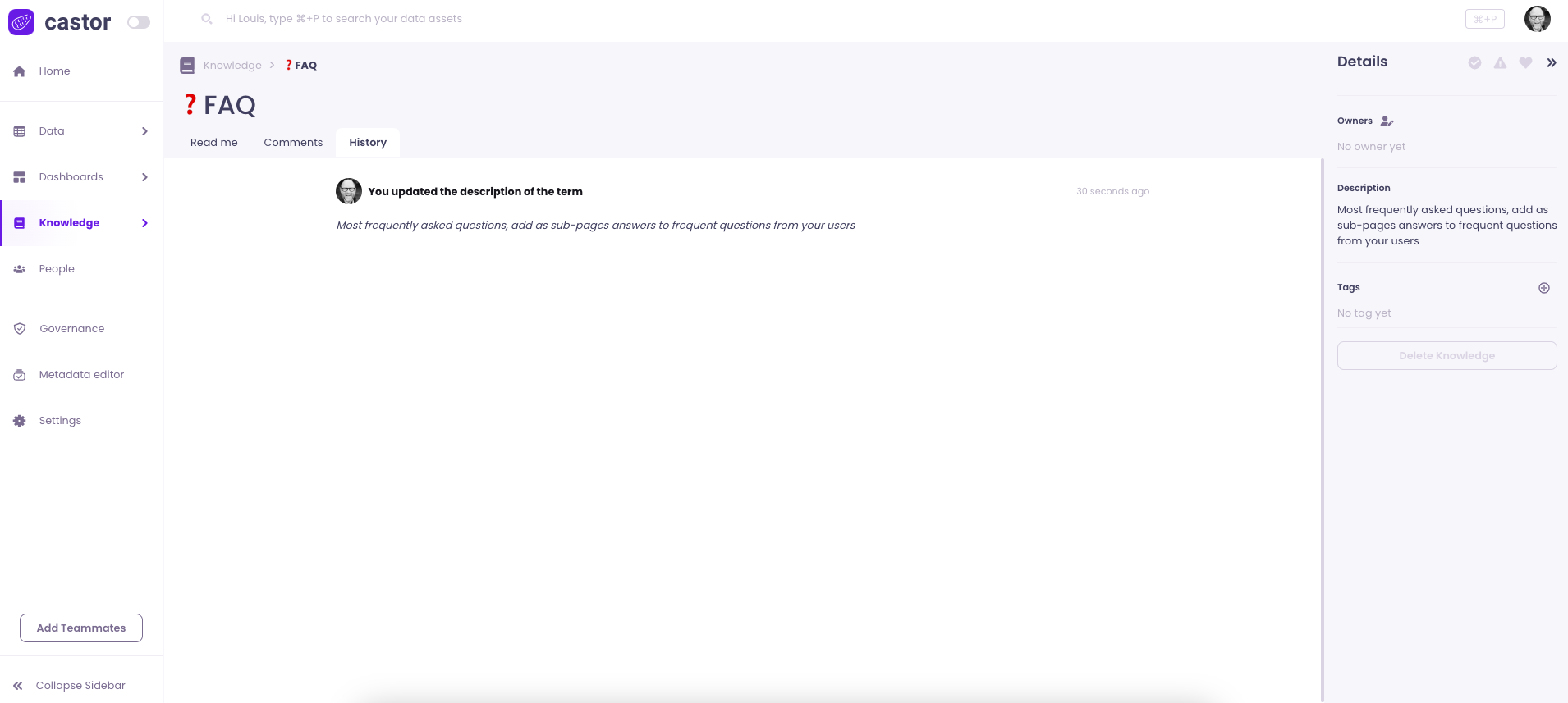 One of Catalog's goal is to centralize all information around your data. Some knowledge goes beyond tables and dashboard, such as KPIs and frequently used terms, and can be stored in the Knowledge section of the Catalog App.
