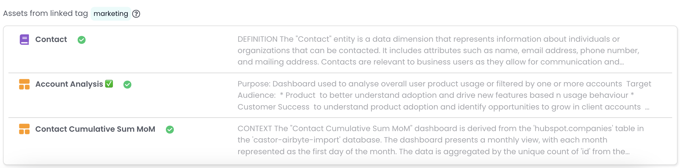 Once the tag is linked, all assets with that tag will appear for easier discovery
