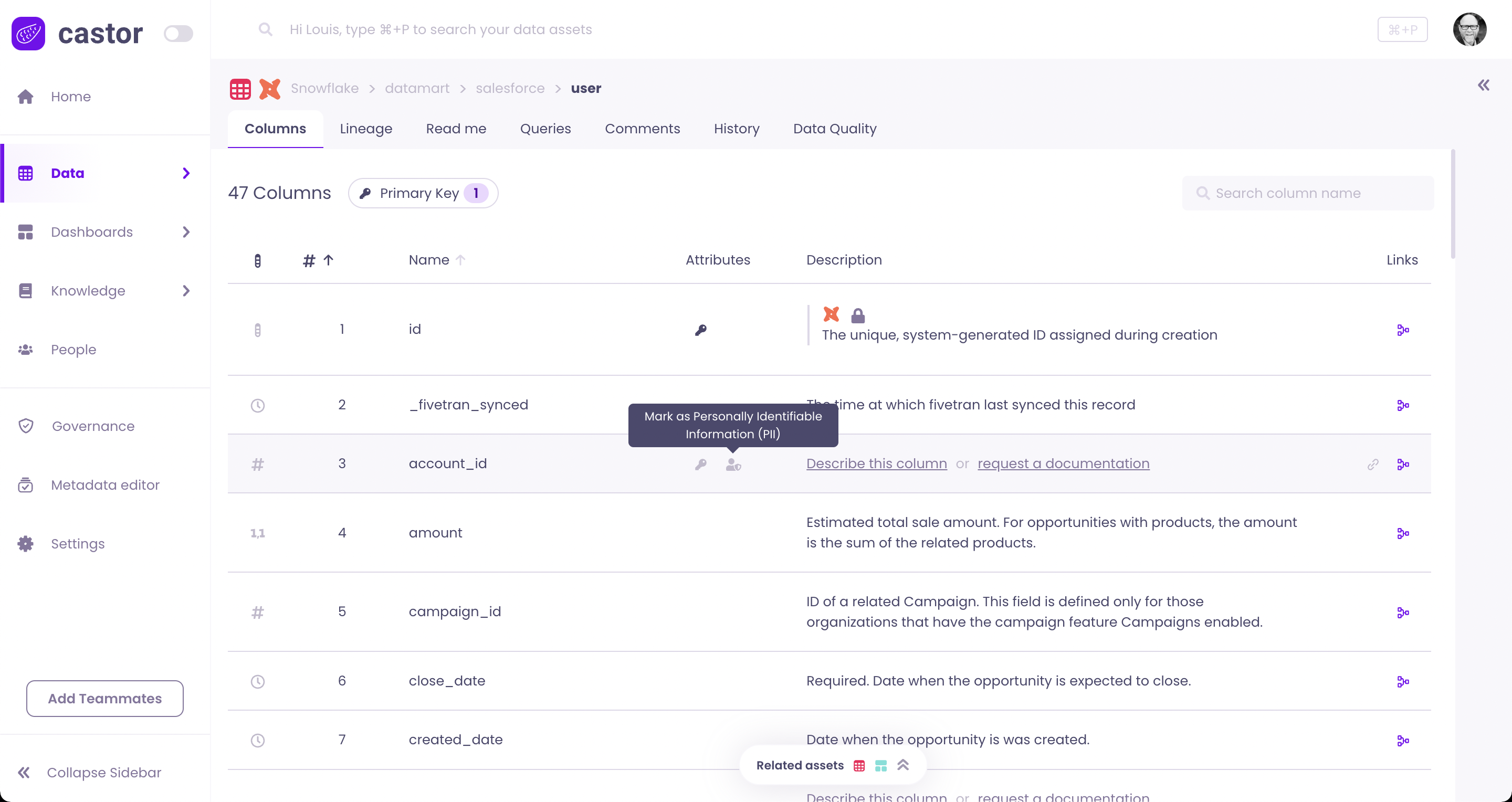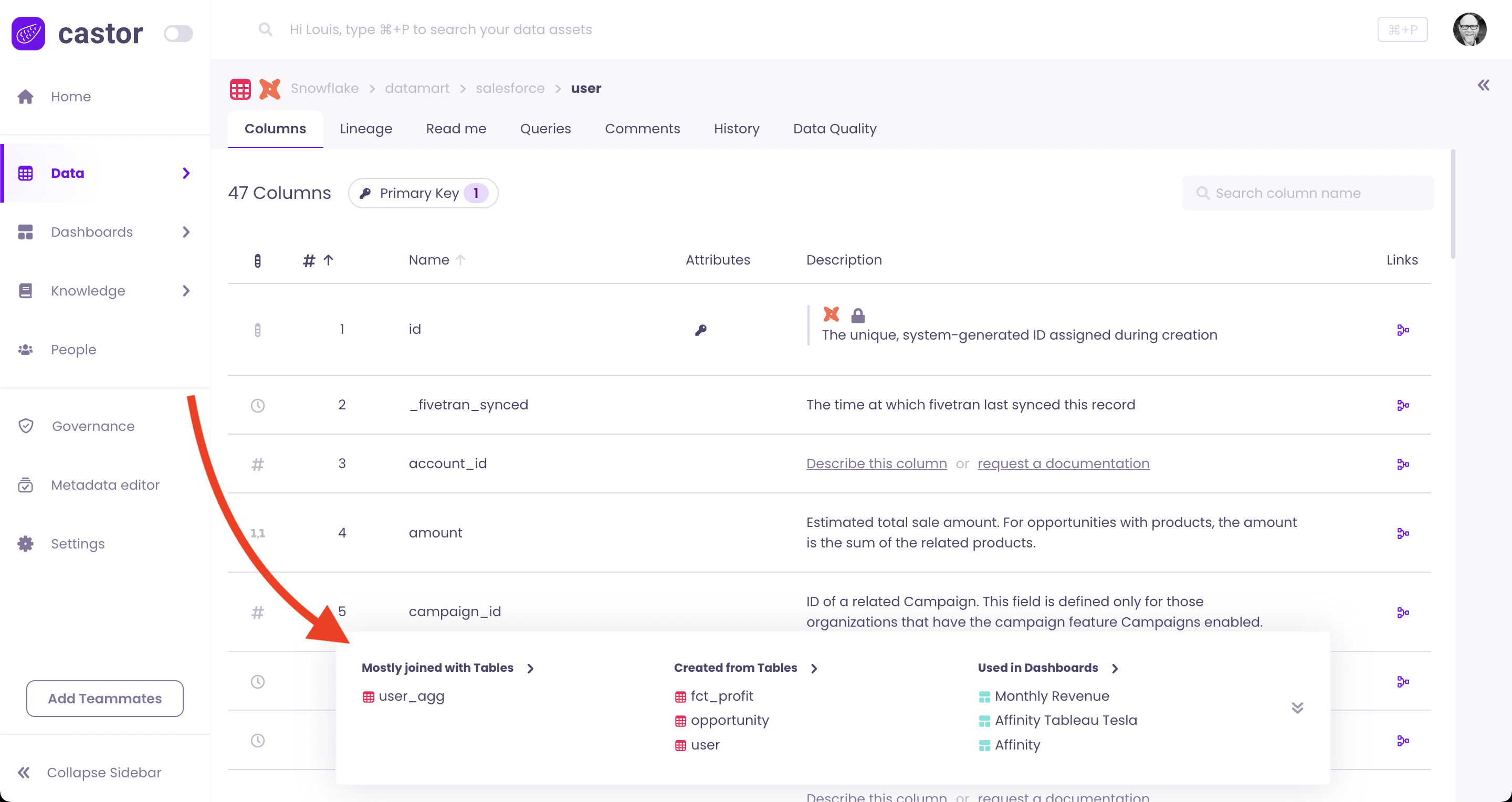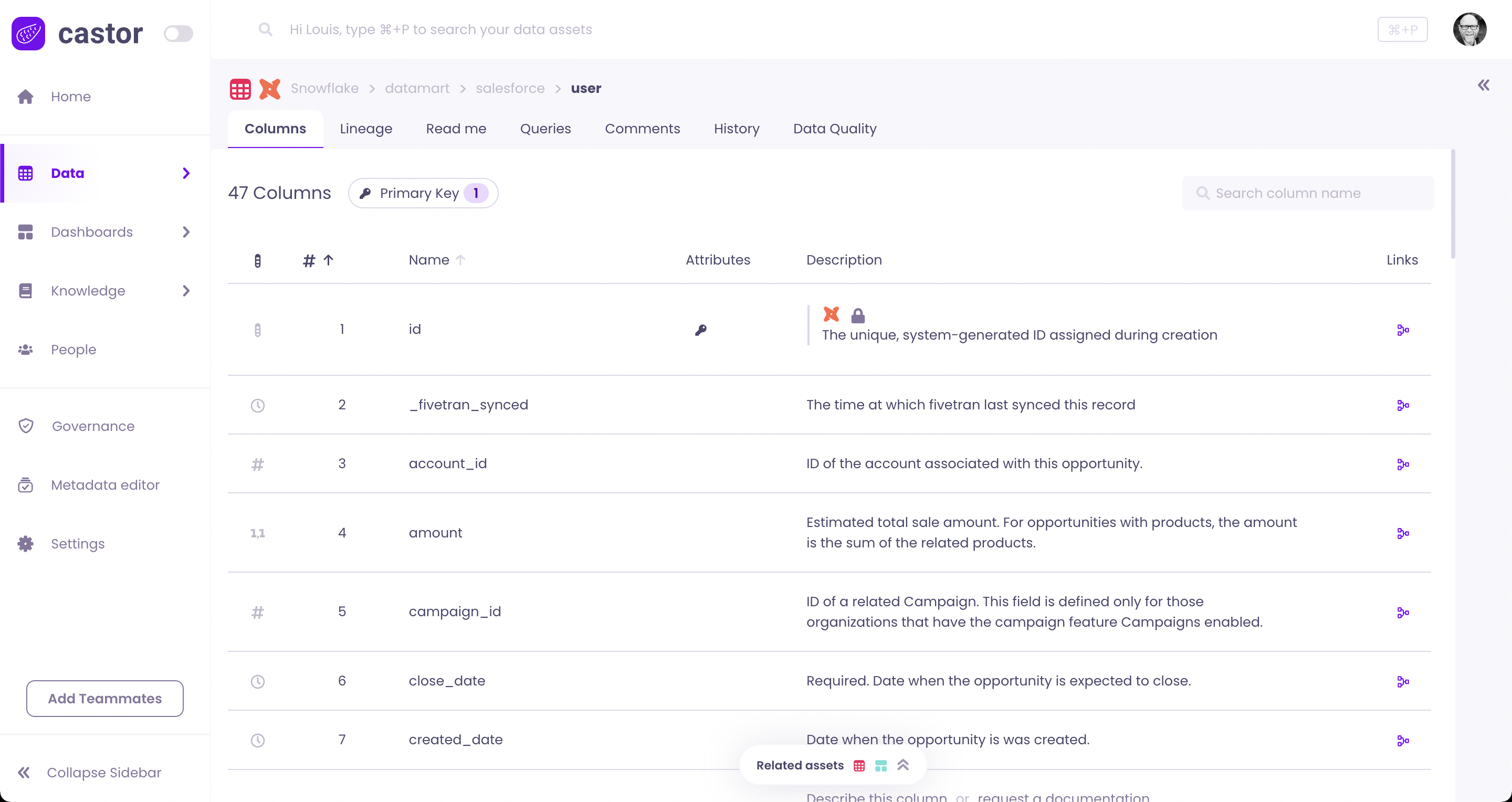 - Castor will centralise all the documentation you have already completed. The imported descriptions will be tagged with the logo of its source and will be immutable. Classic sources would be dbt or column comments in your warehouse
