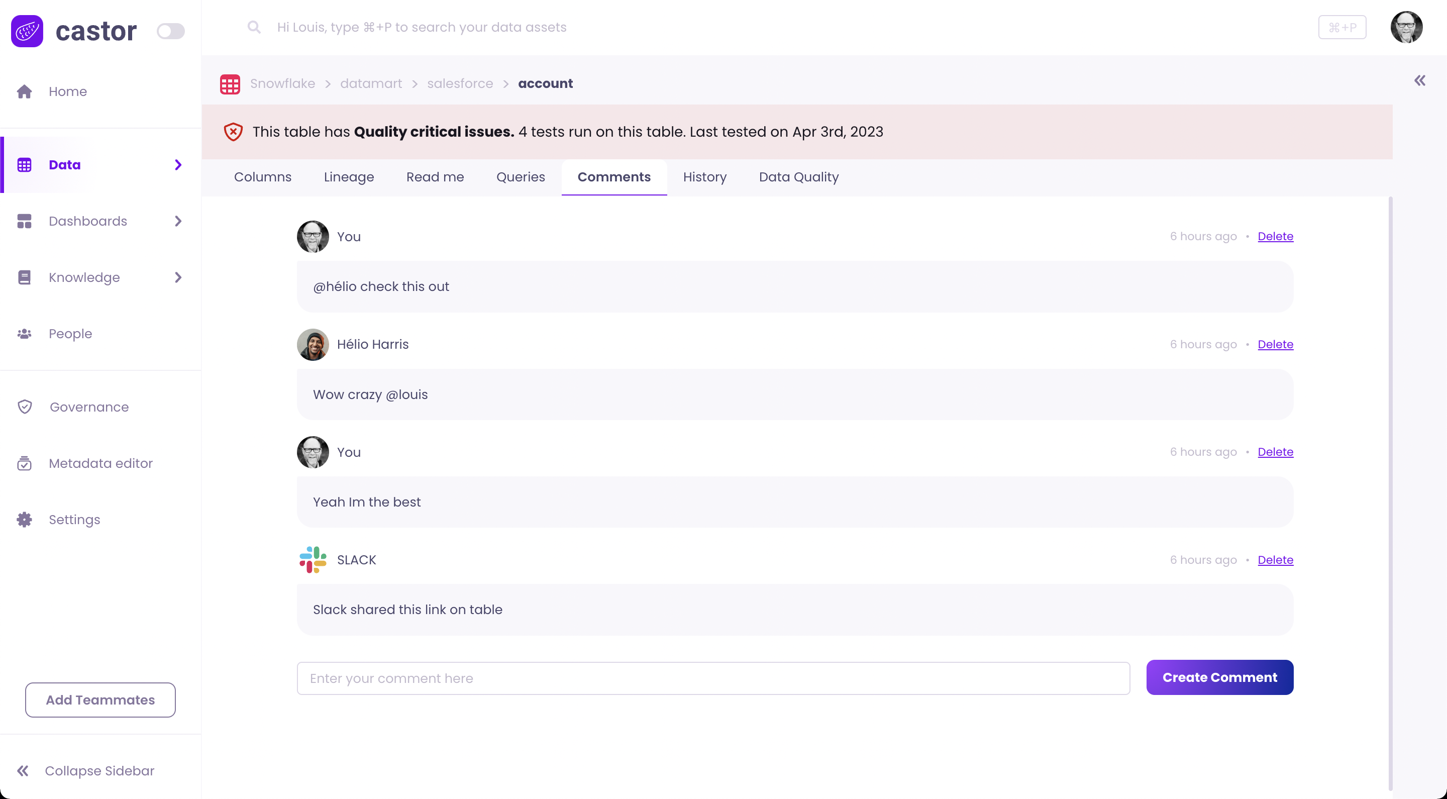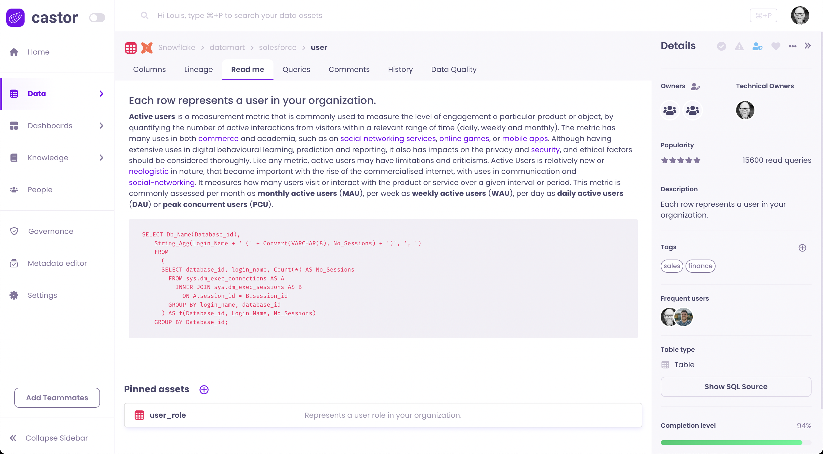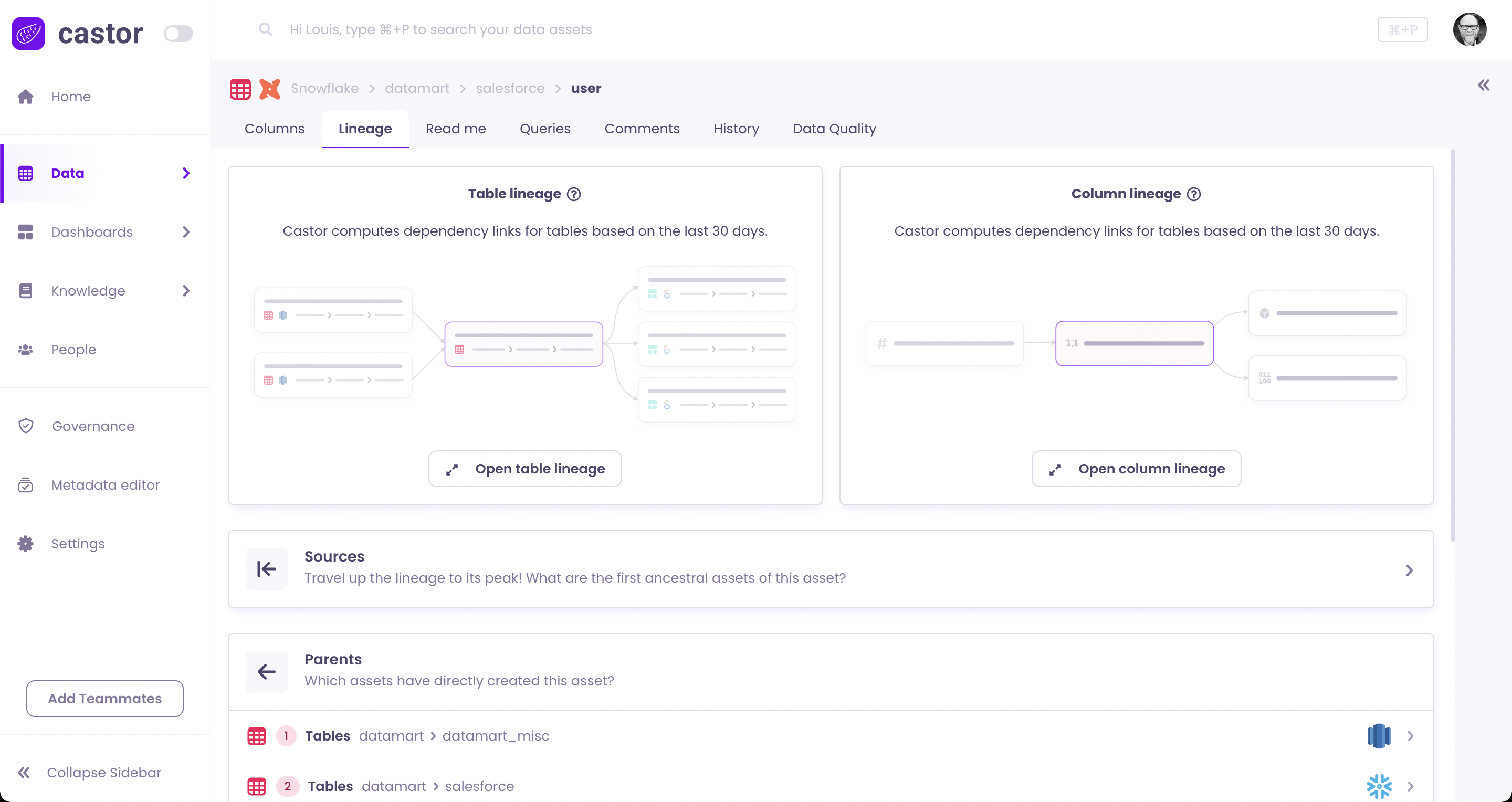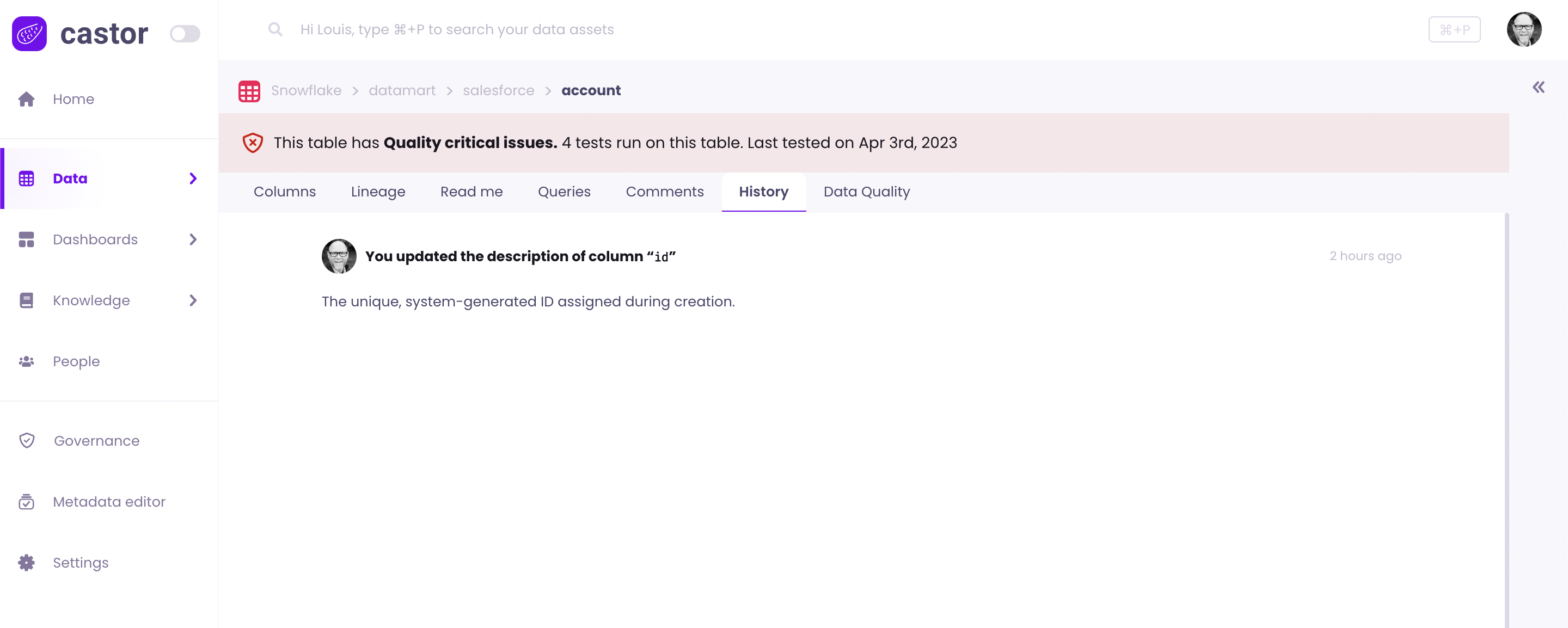 - Castor will centralise all the documentation you have already completed. The imported descriptions will be tagged with the logo of its source and will be immutable. Classic sources would be dbt or column comments in your warehouse