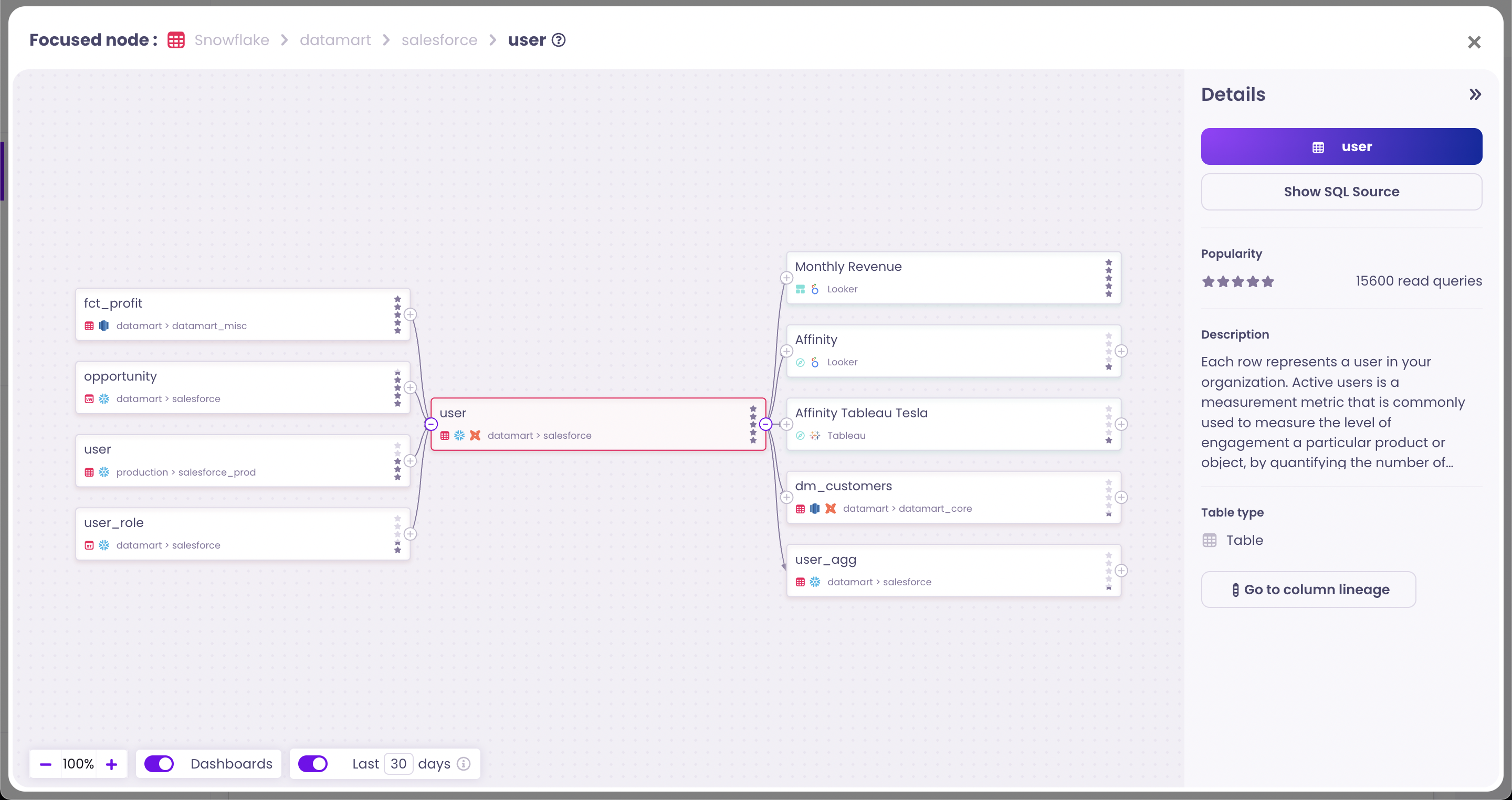 - Also, since lineage is computed based on the observed queries from your warehouse, you can decide to only consider the queries from the last N days.