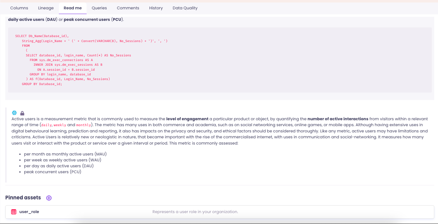 To improve your tables read-mes, you can directly pin relevant assets to it