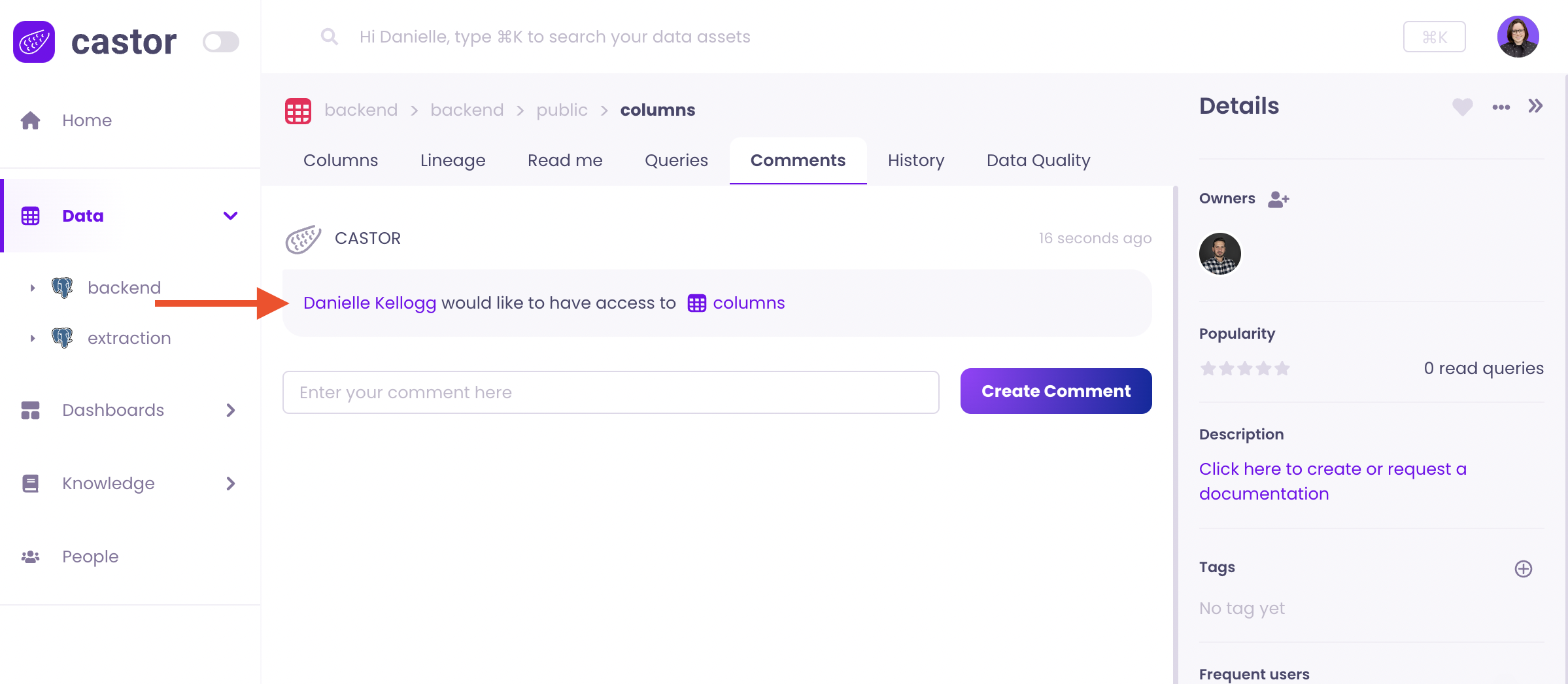 If you find a table you don't have access in the backend, you can request access to from the table owner a table directly in Catalog.