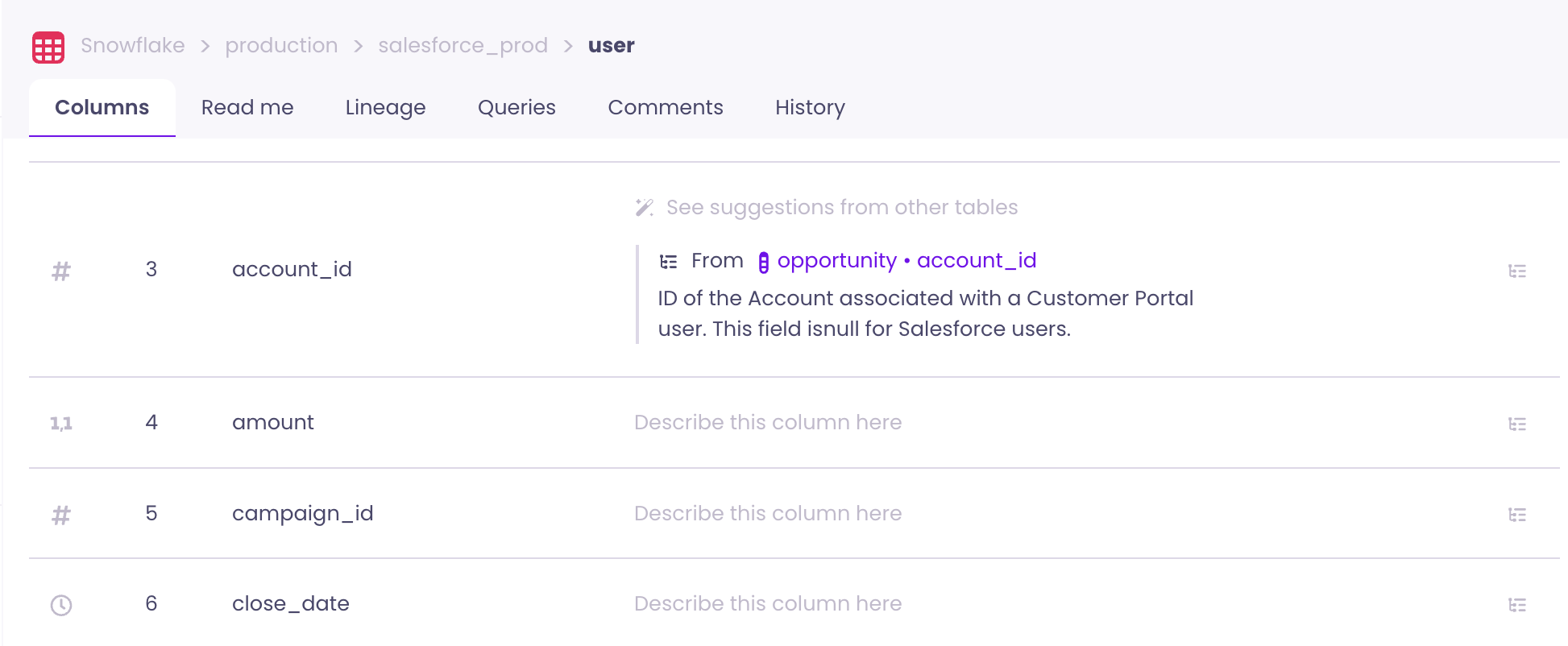 In that case, why should you document the downstream columns? You're right, you should not have to! And Catalog solves that for you this way: