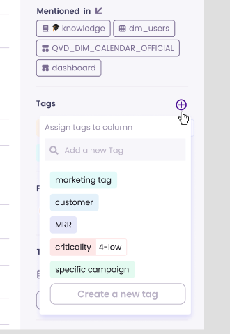 You can either leverage your existing tagging system inside our tool or add new tags directly in Catalog.