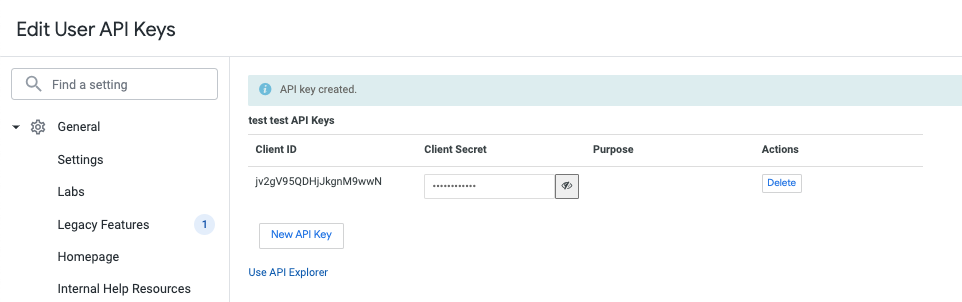 - Click on "New API Key"