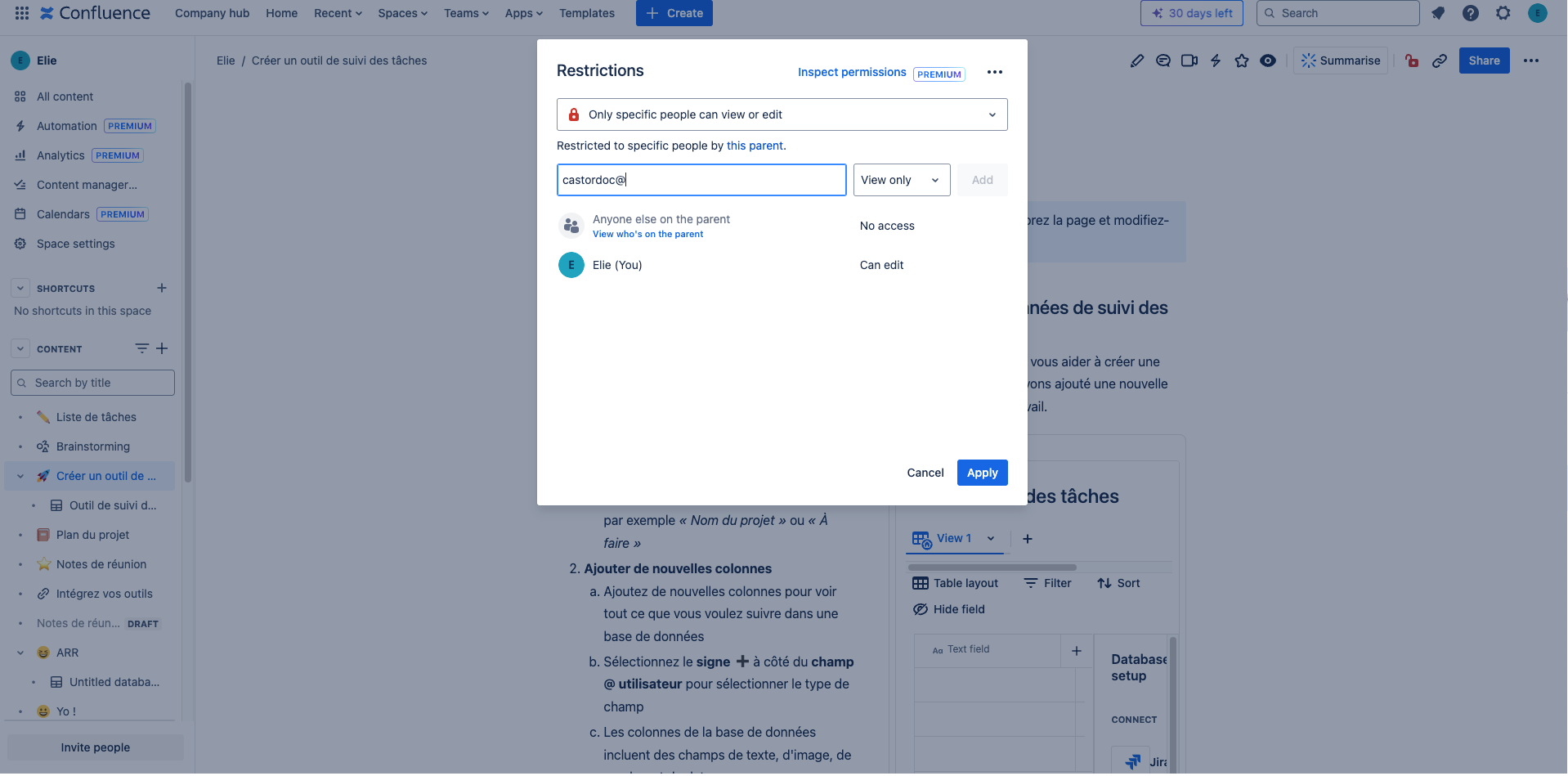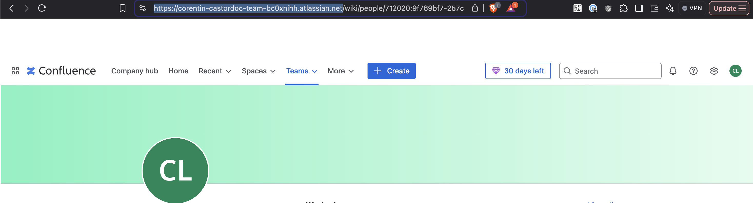 Create a Confluence account for Catalog This account, with the permissions you assign to it in the Confluence space (and therefore the visibility of pages), will be used to synchronize content with Catalog. Location: Your Internal Confluence Space