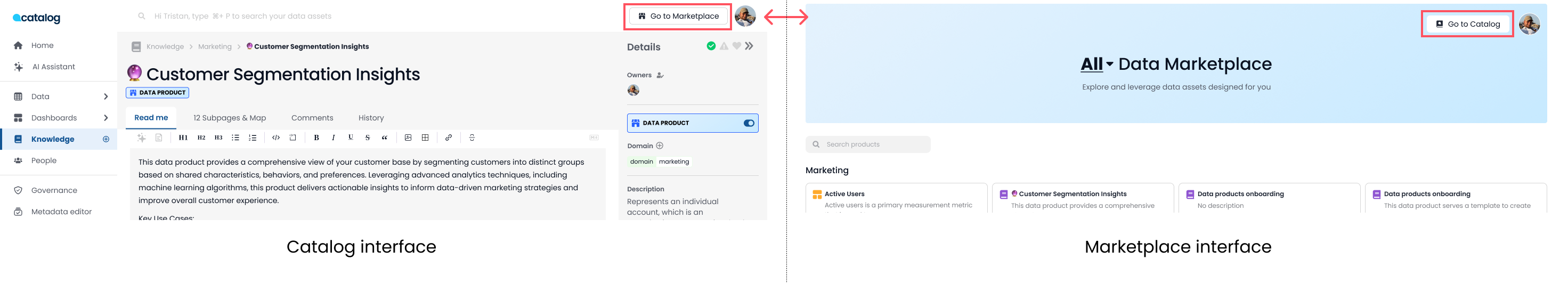 The Marketplace is a curated, consumer-friendly interface that showcases only production-ready data products in a simplified, business-oriented view.