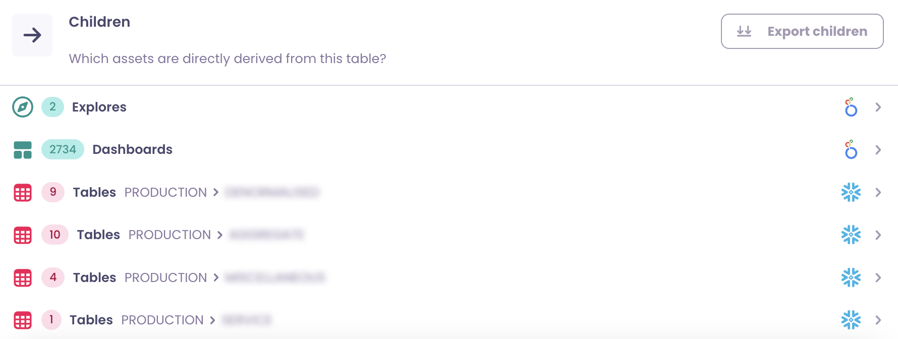 Find out which tables and dashboards are directly related to your tables upstream and downstream.