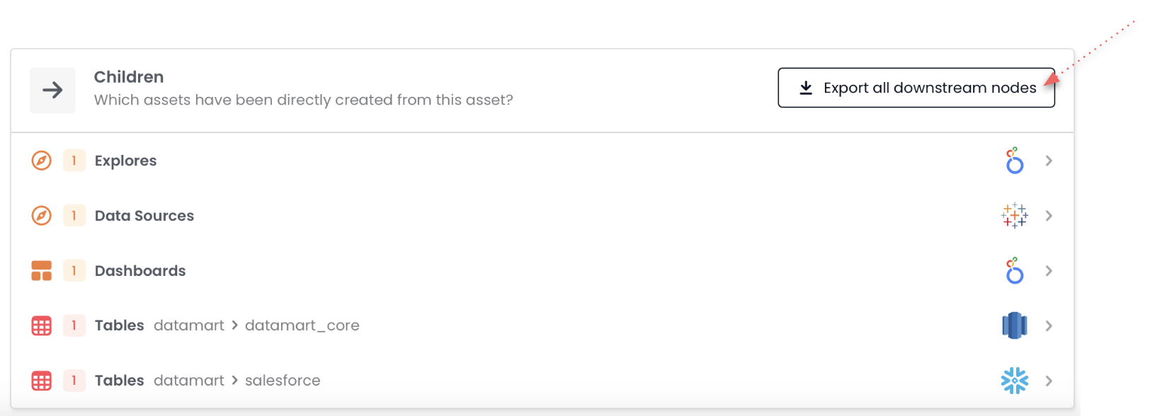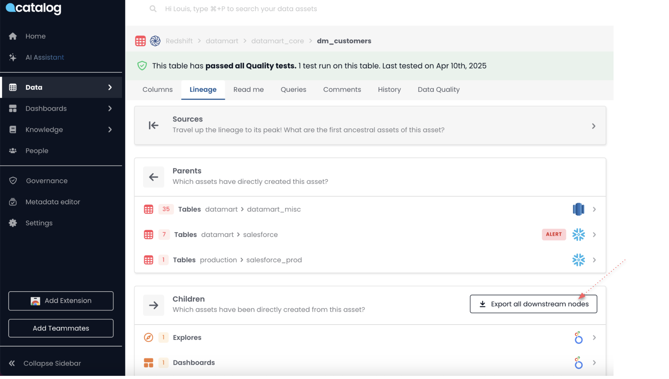 Extract all downstream nodes is an extremely helpful report that provides info about all downstream children of an asset or a column: