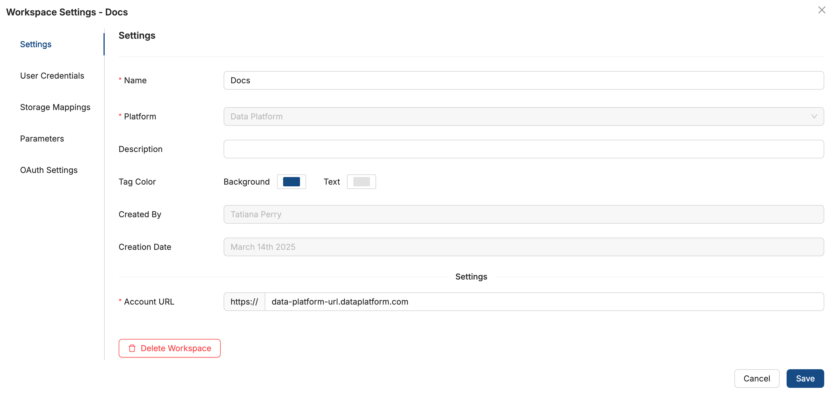 - User Credentials - Configure how you want to connect to your Data Platform. If you want to use OAuth (recommended), you'll also need to add your OAuth Settings.